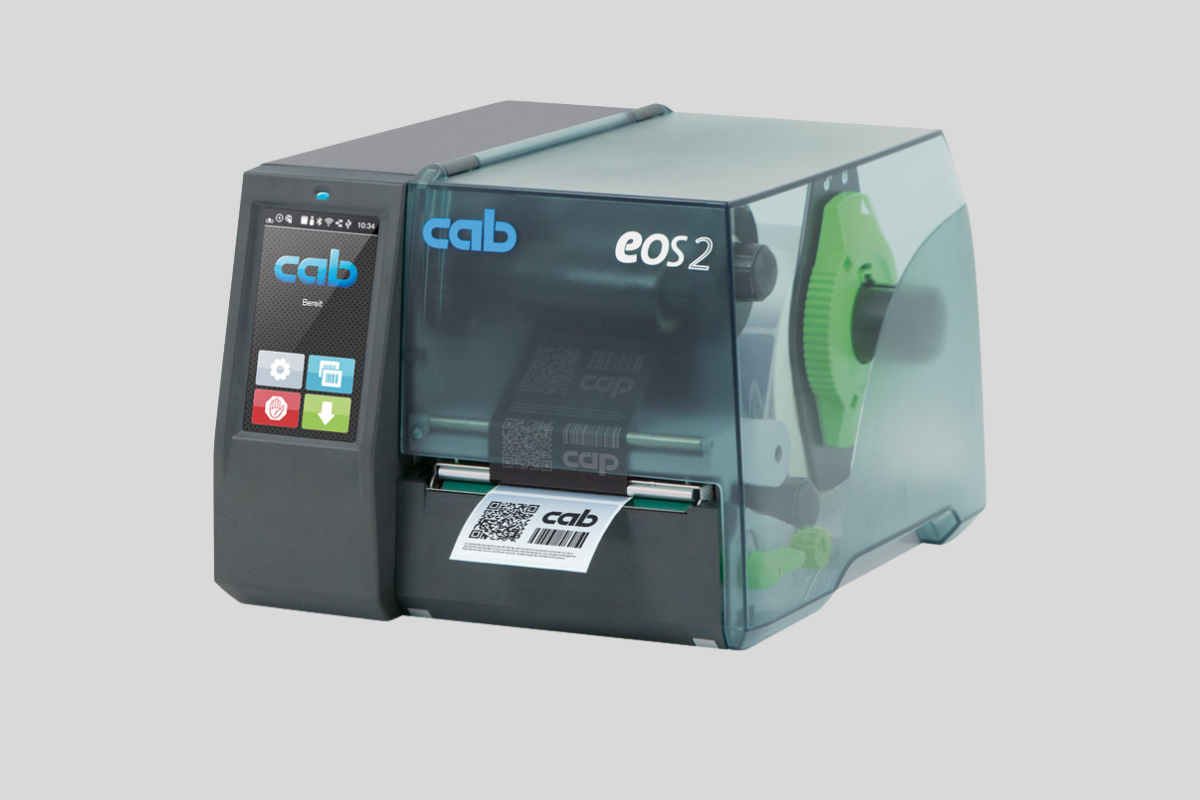 CAB EOS2/EOS5 series are the label printers with highest opertaing comfort. One concept – two sizes. The EOS series combines all functions of a solid label printer with highest operating comfort. EOS2, the compact one – for label roll diameters up to 152 mm. EOS5 for large labels rolls – with diameters up to 203 mm.
