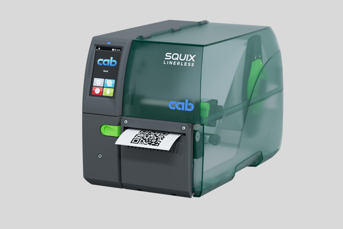 The CAB SQUIX label printer Linerless system delivers up to 60% more labels per roll compared to traditional self adhesive labels with liners, while eliminating the need to dispose of liner waste. It supports variable label sizes through a programmable material saving function and automatically cuts labels after the final print line with an adjustable offset. The system is fully compatible with standard SQUIX label printers in terms of functionality and dimensions, and both basic and peel-off devices can be retrofitted for linerless material processing.