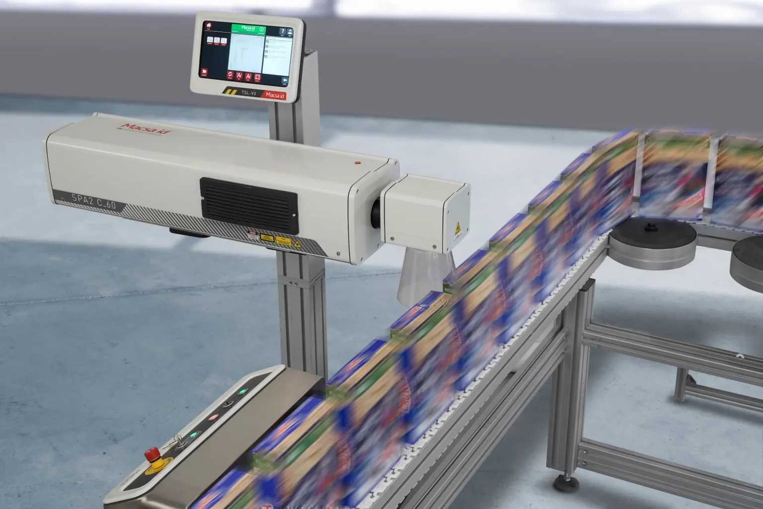The Macsa ID SPA CO₂ series is a modular, high performance laser coder designed for fast, permanent marking across food, beverage, FMCG, pharmaceutical and industrial packaging lines. Built on Macsa’s SPA (Scalable Product Architecture) platform, the CO₂ SPA delivers superior print quality, stable performance and long-term reliability – all without inks, solvents or consumables.