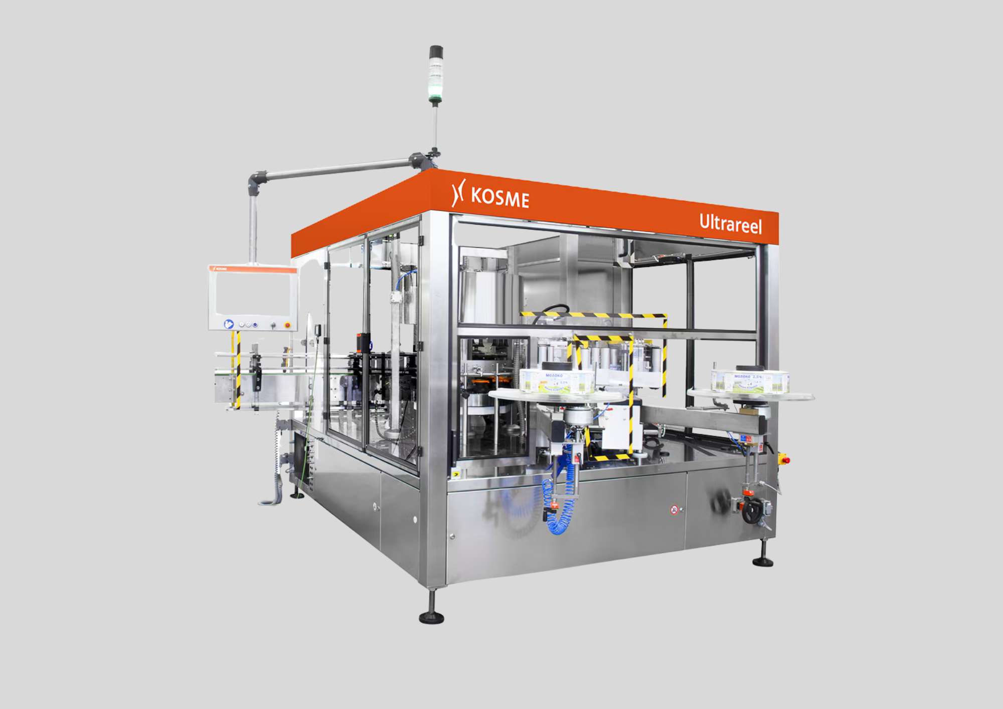 The Kosme Ultrareel is a high performance wrap-around labelling system designed to deliver exceptional precision, flexibility, and visual impact. In a market where purchasing decisions are driven by packaging appearance, Ultrareel ensures your product stands out with perfectly applied labels, even as consumer demands for information and decoration continue to grow.