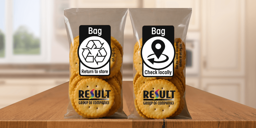 Overlabelling is Result Group’s proven solution for adapting packaging quickly and sustainably, helping brands respond to evolving compliance requirements without reprinting or waste. Whether it’s updating Austraian recycle labels, regulatory content, or correcting pack information, our overlabelling systems deliver accurate, food grade labelling directly onto pre printed packaging – ready for manufacture.
